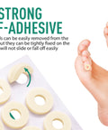Round adhesive foam pads that cushion calluses, corns, or blisters for all-day relief.